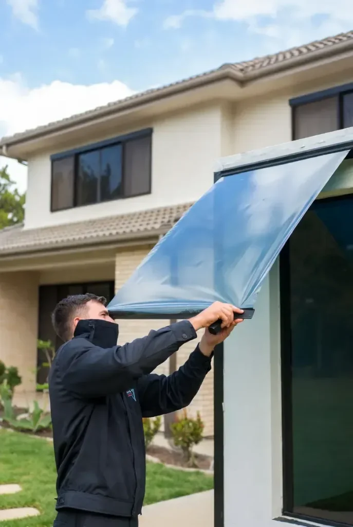 Professional residential window tinting installation on modern Melbourne home for privacy and energy efficiency